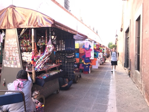 Then there are the people who walk the streets selling handmade dolls, candy and sweets, gum, t-shirts, purses, etc., and so on. Oh, and the many musicians that entertain you first outside the plentiful outdoor restaurants and later ask for a small donation. There are the jugglers, and the people who wash the car windows, the vendors selling balloons and children’s toys in the plazas. The man selling roses to couples walking by or in the cafes.