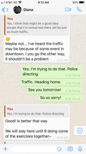 The only bright spot for me was that the traffic was literally moving at a snail’s pace and I was able to text my students from the car. They were very cute. They were actually doing classwork and sending me photos of what they had done. I sent them additional things to do, and all-in-all, the class seemed to get along without me. Phew.