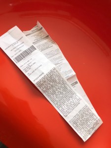 Honestly, I thought it was someone’s grocery store receipt, because that was what it looked like. However, on closer inspection, I realized it was really a parking ticket. A parking ticket!