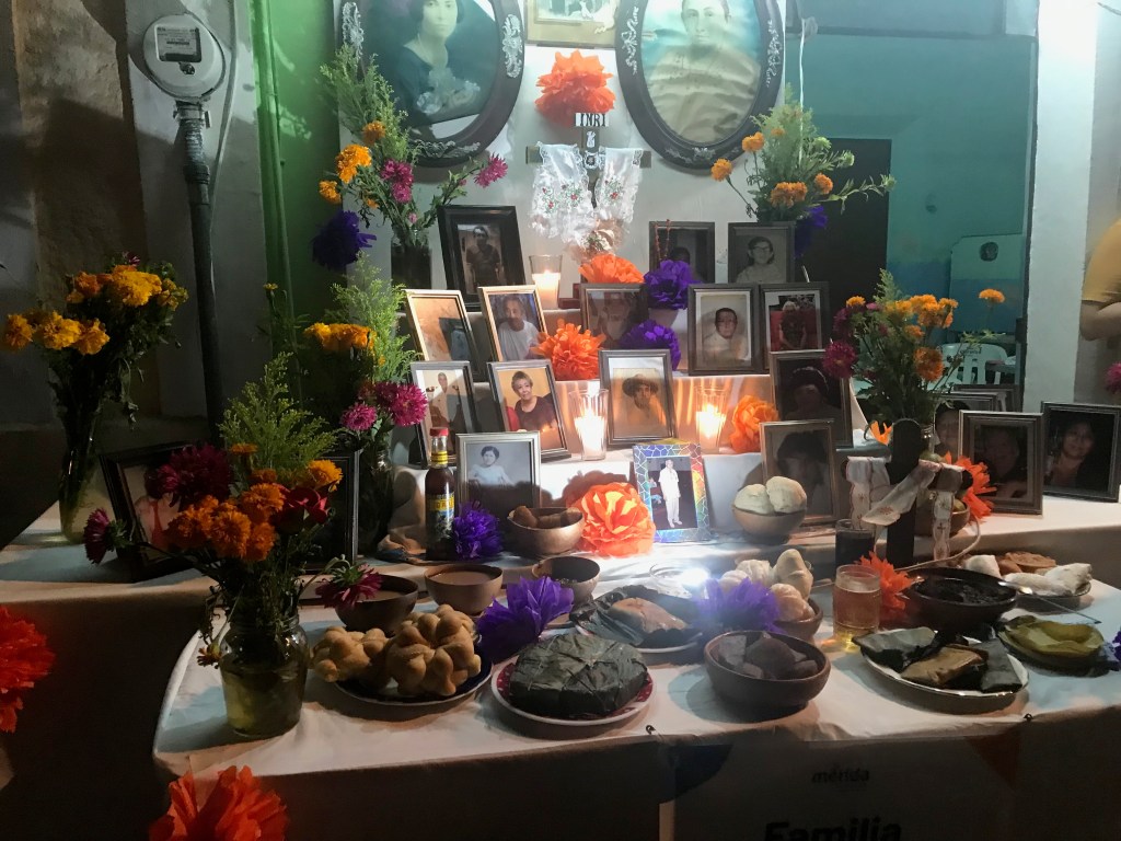 The traditions include the assembling of alters of various sizes with each level depicting a different stage — smaller alters (2 levels) represent heaven and earth, while larger, 7-level alters represent the necessary steps to get into heaven. The alters are often decorated with photos of loved ones who have died, their favorite food and drink, and flowers and seeds. They can be simple or ornate, large or small.