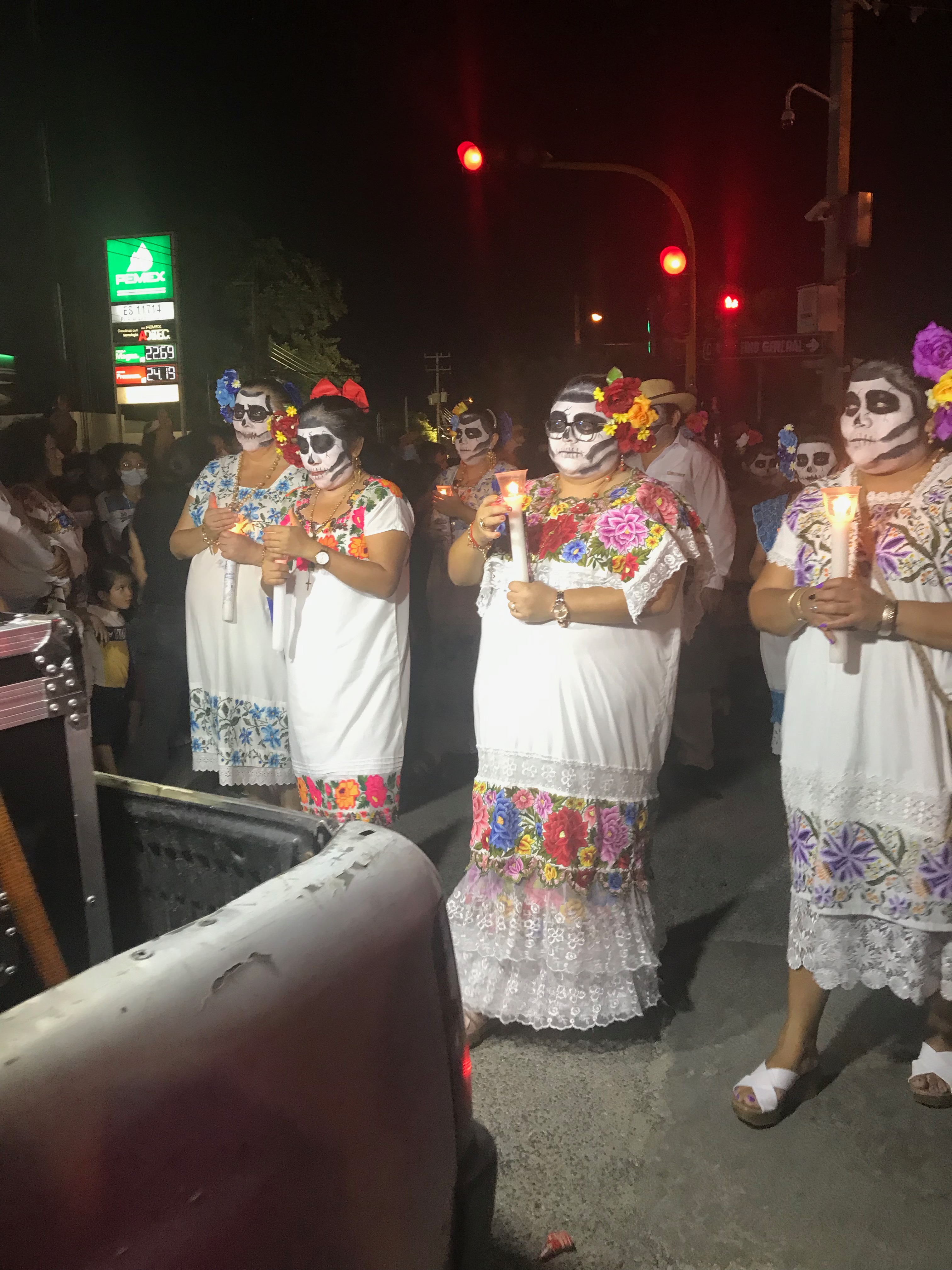 I finally had a chance to see some local attractions. Last night, I went with my friends Brenda and Brenda (mother and daughter), and their friend Bellia to watch the Paseo de las Animas (the walk of souls) in downtown Merida. It was quite interesting and insanely crowded.