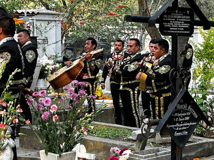 Once again I missed the chance to go to a cemetery to experience the true spirit of the holiday. We arrived just as the cemetery was closing. Rob and Azucena did go earlier the day and shared some pictures with me. Apparently, there were even Mariachi!