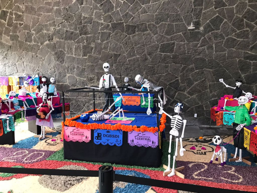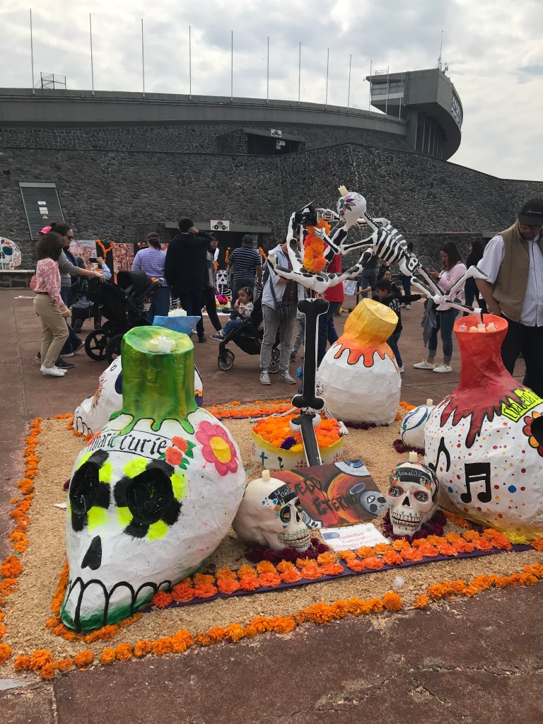 The University campus in CDMX is enormous! We visited several buildings, including the library, which featured a number of ofrendas, including a very large one celebrating Lucha Libre, complete with a boxing ring, announcers, audience members, and vendors.