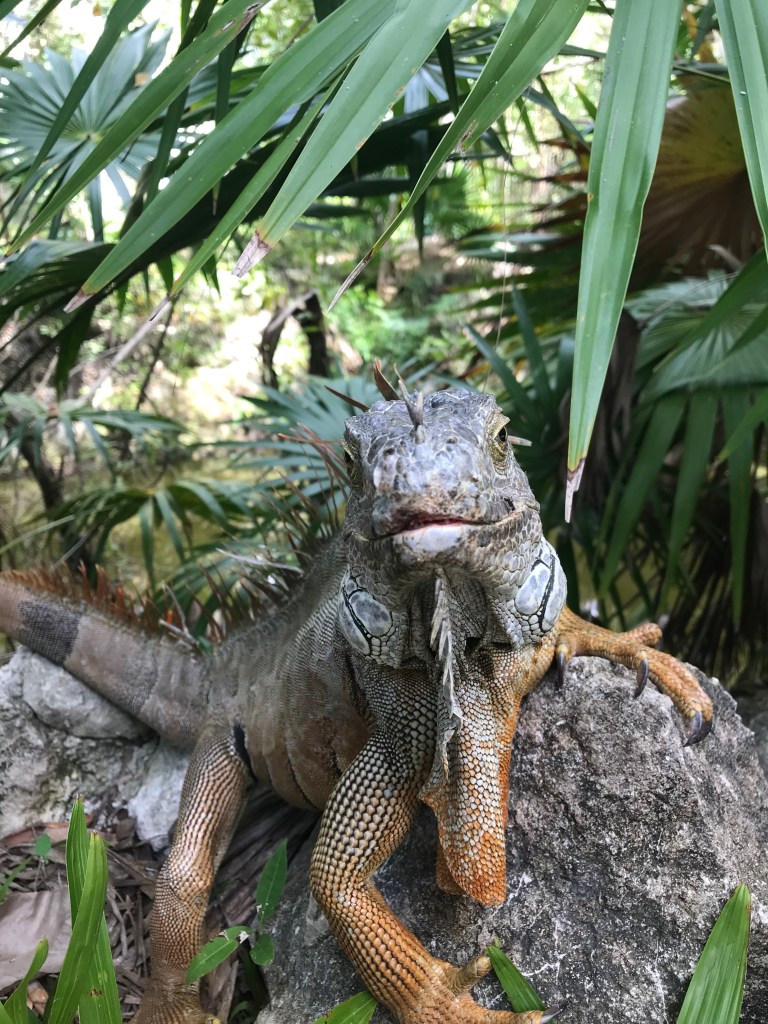 Of course, there were also flamingoes and iguanas and crocodiles (in enclosures, for sure). In fact, one of the guest pools that sat next to a lagoon had several enormous iguanas that hung out right along the edge of the pool. Unfortunately, I didn’t have my phone handy to take a pic (I was in the water!). But I did get a nice close up of another one near the flamingo enclosure.