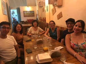 I also had the chance to have dinner with my former colleagues from the Anglo, although I forgot to get a group shot. Here is one of me and Rodrigo and his wife Eunice. It was a blast to see so many of my friends again! We were quite the tribe before the pandemic, celebrating most Saturdays with beers and margaritas at the local Irish pub, after classes of course! There was at least one “little” surprise: One of the gang had just had a baby! She was just two months old and as precious as they come!