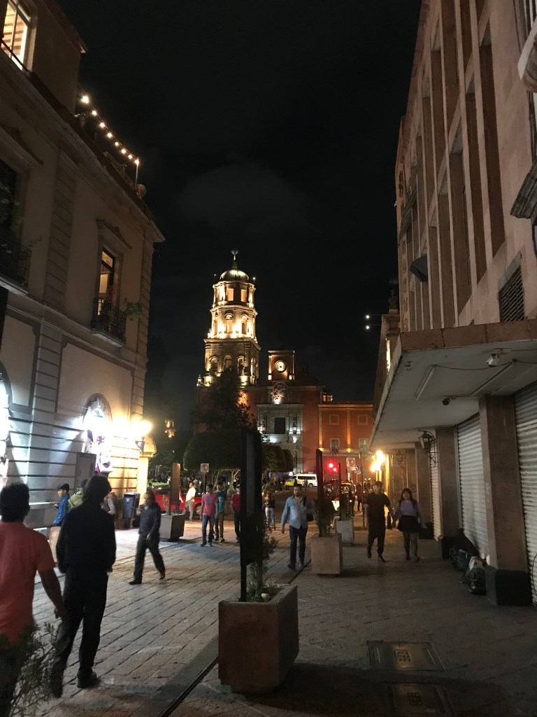 On the final night in Querétaro, Paola and Alberto and I walked around the city. One of the fun things about it is that there is always something going on. On this night, there was a live band playing music in one of the plazas. People were dancing in the street! The weather was delightful, which made it all the more enjoyable. The music was amazing and so were the people dancing.
