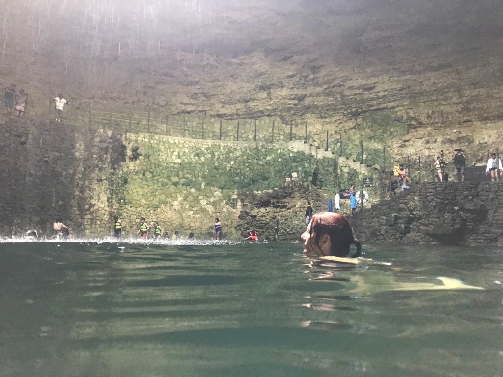 Since I’ve been back, I also had the opportunity to take a day and go to a Cenote not far from Chichen Itza in a little town outside the city of Valladolid. If you want a refreshing cool-down, you can’t beat the cenotes. The water is fresh and cool, and the natural setting is amazing. Cenotes were considered sacred by the Mayans and are today still a source of fresh water for residents of the peninsula. New ones are always being discovered, either by accident or when an old ceiba tree collapses into one!