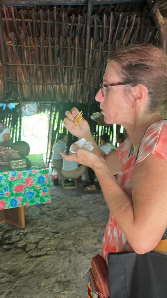 This cenote — Hubiku — included a brief visit to a honey tasting area. The bees here do not have stingers and live in old tree stumps instead of man-made hives. The honey was delicious. The next area was for tasting homemade tortillas via cochinita pibil tacos, a local specialty. Cochinita is made from pork marinated in special seasonings and served with a type of pickled red onion. Very VERY delicious.